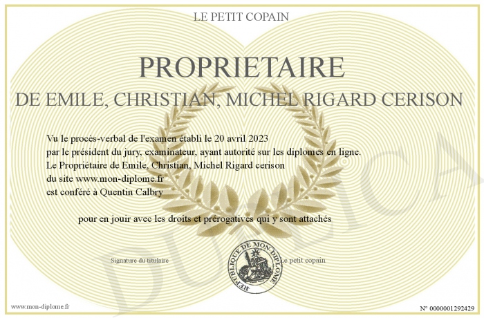 Envoyez par email votre Propriétaire de Emile, Christian, Michel Rigard cerison personalisé