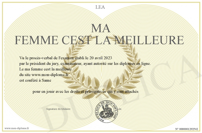 Envoyez par email votre ma femme cest la meilleure personalisé