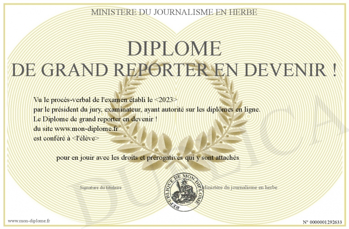 Envoyez par email votre Diplôme de grand reporter en devenir ! personalisé