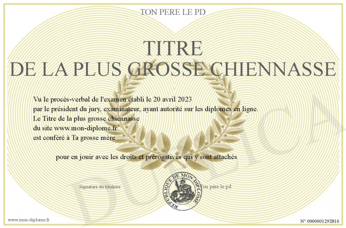Envoyez par email votre Titre de la plus grosse chiennasse personalisé