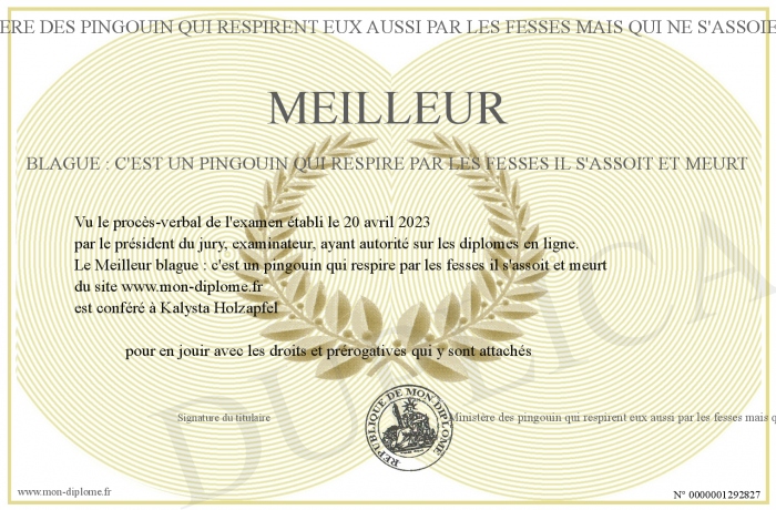 Envoyez par email votre Meilleur blague : c'est un pingouin qui respire par les fesses il s'assoit et meurt personalisé