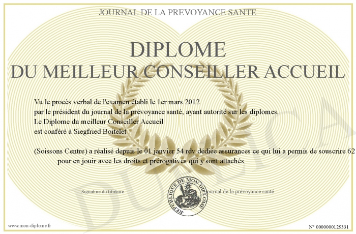 Envoyez par email votre Diplome du meilleur Conseiller Accueil personalisé