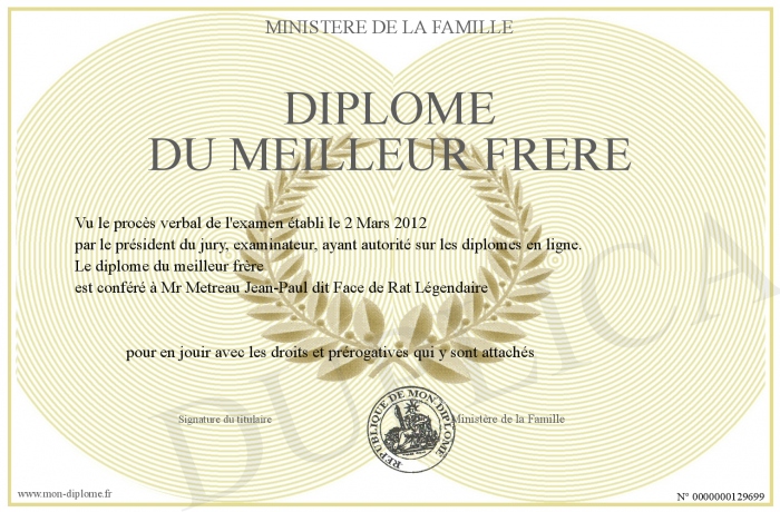 Envoyez par email votre Diplôme du meilleur frère personalisé