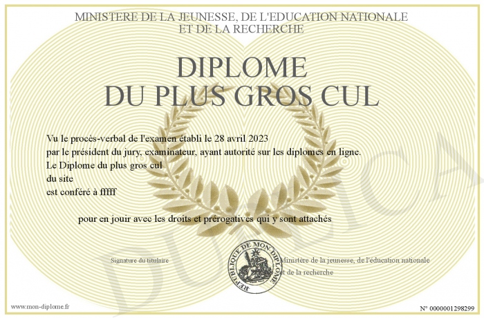 Envoyez par email votre Diplôme du plus gros cul personalisé