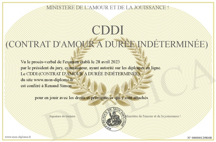 Envoyez par email votre CDDI (CONTRAT D'AMOUR A DURÉE INDÉTERMINÉE) personalisé