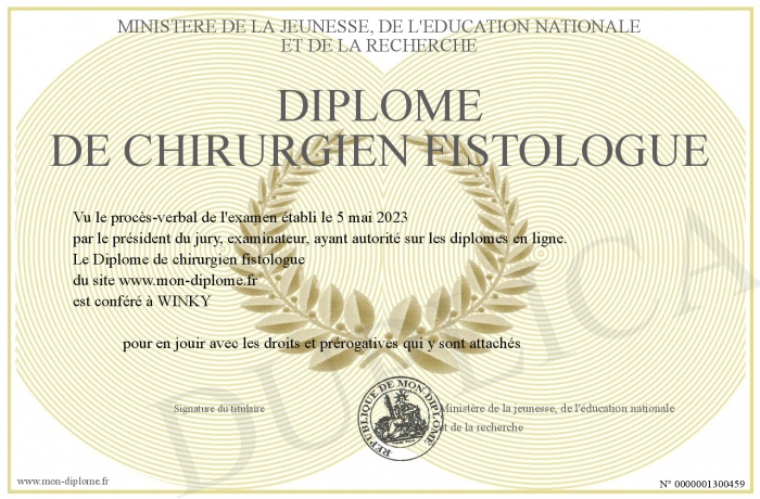 Envoyez par email votre Diplôme de chirurgien fistologue personalisé