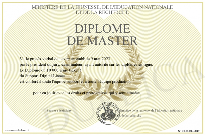 Envoyez par email votre Diplome de master personalisé