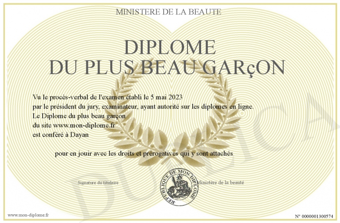 Envoyez par email votre Diplôme du plus beau garçon personalisé