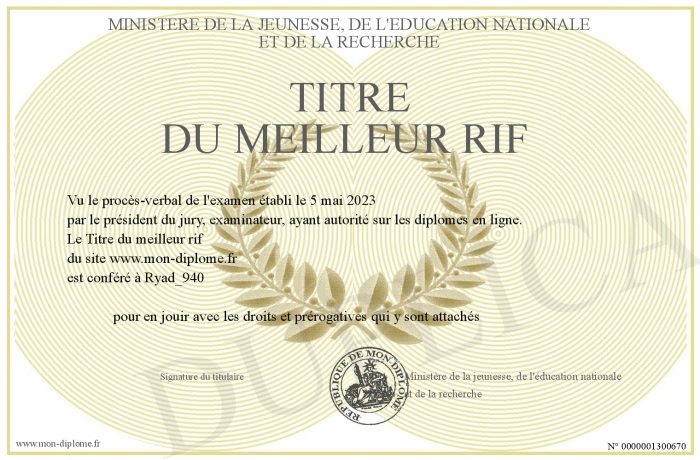 Envoyez par email votre Titre du meilleur rif personalisé