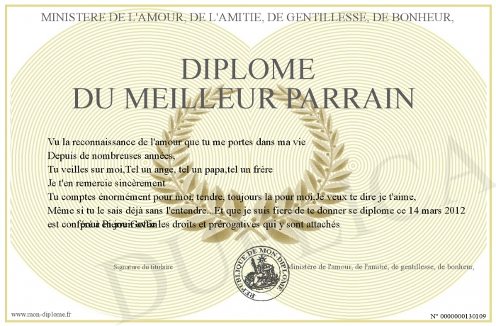Envoyez par email votre Diplôme du meilleur parrain personalisé