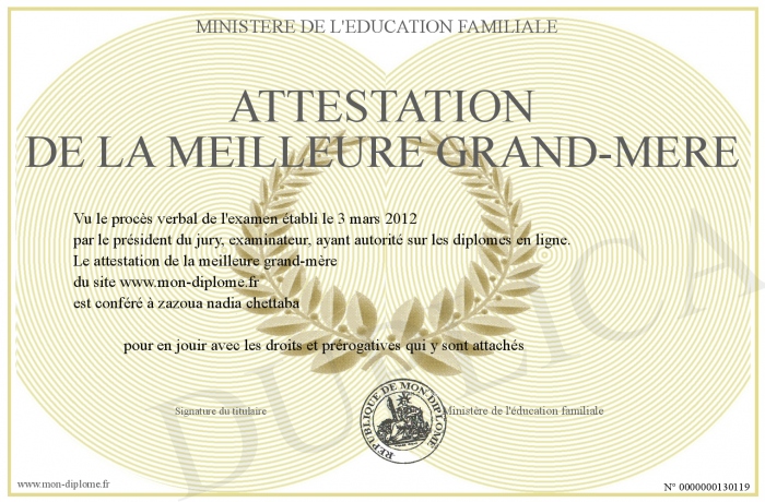 Envoyez par email votre attestation de la meilleure grand-mère personalisé