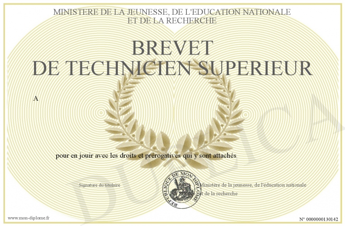 Envoyez par email votre BREVET DE TECHNICIEN SUPERIEUR personalisé