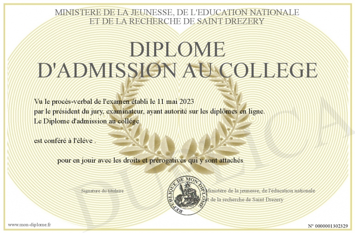 Envoyez par email votre Diplôme d'admission au collége personalisé