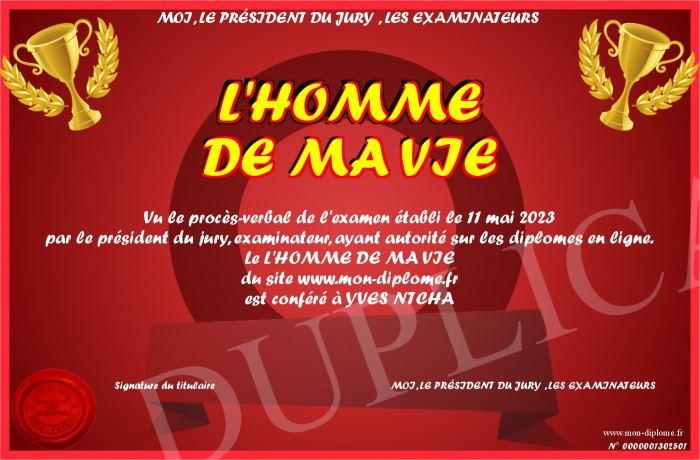 Envoyez par email votre L'HOMME DE MA VIE personalisé