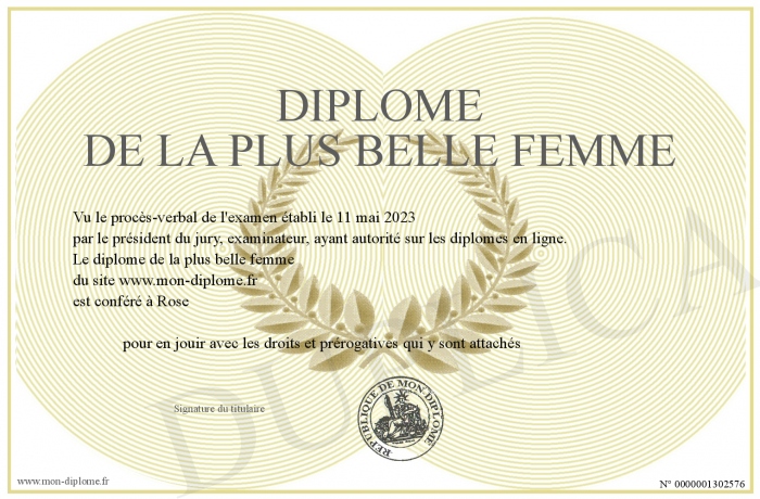 Envoyez par email votre diplôme de la plus belle femme personalisé
