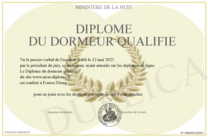 Envoyez par email votre Diplôme du dormeur qualifié personalisé