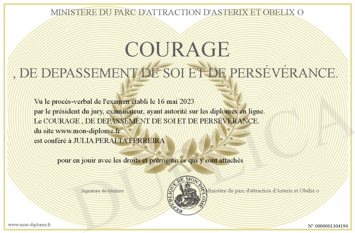 Envoyez par email votre COURAGE , DE DEPASSEMENT DE SOI ET DE PERSÉVÉRANCE. personalisé
