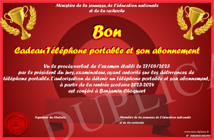 Envoyez par email votre Bon Cadeau Téléphone portable et son abonnement personalisé