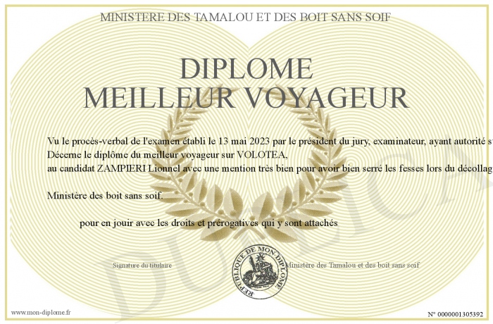 Envoyez par email votre Diplôme meilleur voyageur personalisé