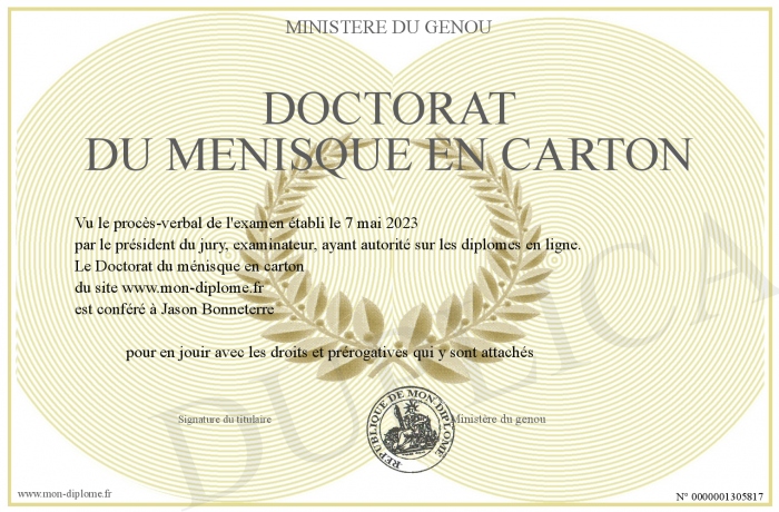 Envoyez par email votre Doctorat du ménisque en carton personalisé