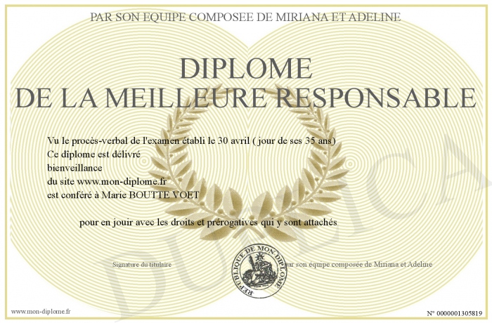 Envoyez par email votre Diplôme de la meilleure responsable personalisé