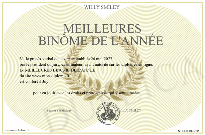 Envoyez par email votre MEILLEURES BINÔME DE L'ANNÉE personalisé