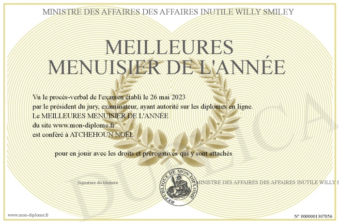 Envoyez par email votre MEILLEURES MENUISIER DE L'ANNÉE personalisé