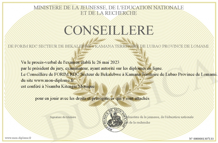Envoyez par email votre Conseillère de FORIM RDC Secteur de Bekalebwe à Kamana Territoire de Lubao Province de Lomami. personalisé