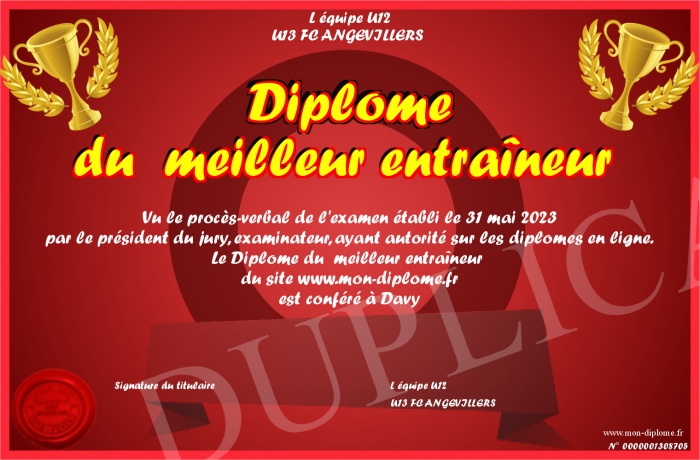 Envoyez par email votre Diplôme du meilleur entraîneur personalisé