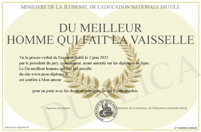 Envoyez par email votre Du meilleur homme qui fait la vaisselle personalisé