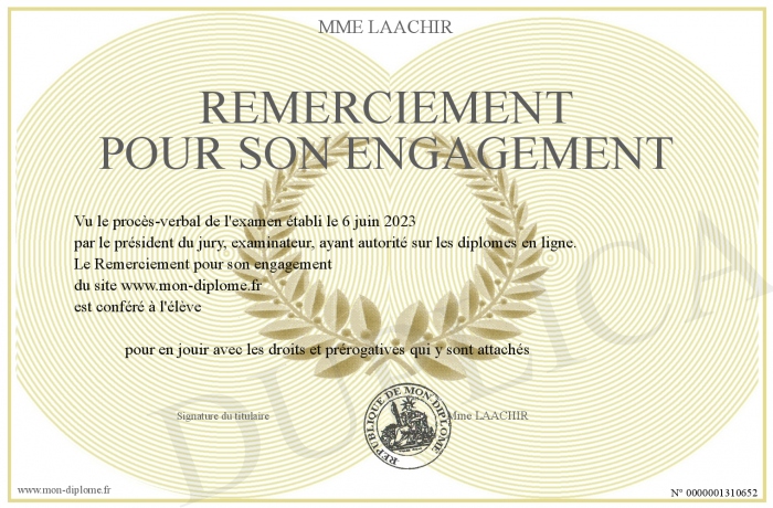 Envoyez par email votre Remerciement pour son engagement personalisé