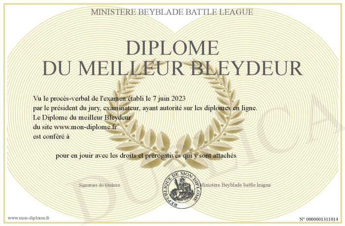 Envoyez par email votre Diplôme du meilleur Bleydeur personalisé