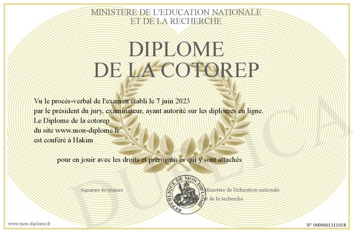 Envoyez par email votre Diplôme de la cotorep personalisé