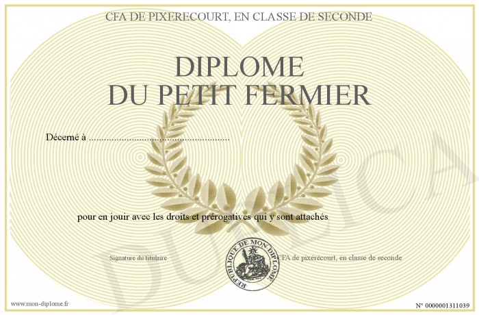 Envoyez par email votre Diplôme du petit fermier personalisé
