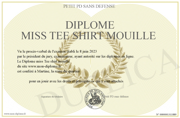 Envoyez par email votre Diplôme miss Tee shirt mouillé personalisé