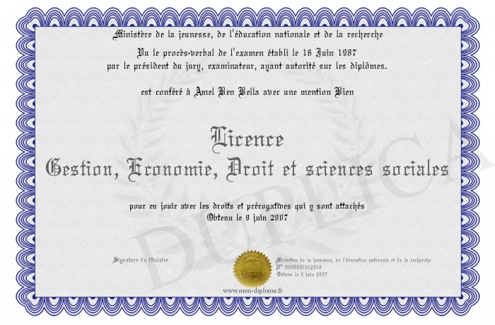 Envoyez par email votre Licence Gestion, Economie, Droit et sciences sociales personalisé