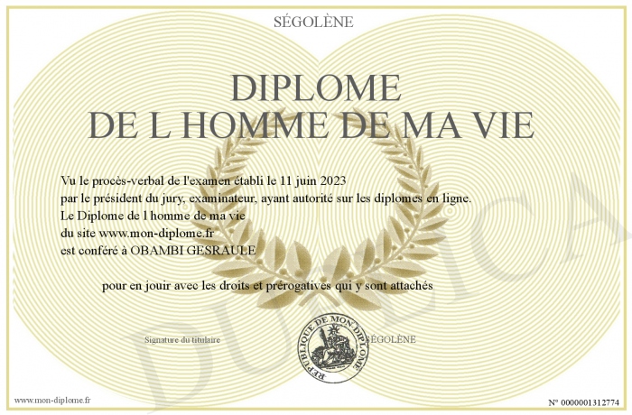 Envoyez par email votre Diplôme de l homme de ma vie personalisé