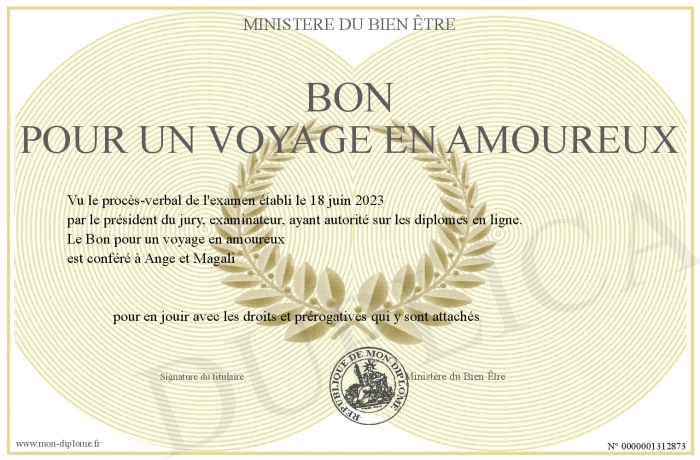 Envoyez par email votre Bon pour un voyage en amoureux personalisé