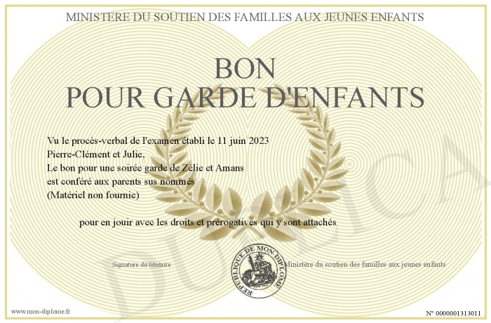 Envoyez par email votre Bon Pour Garde d'enfants personalisé