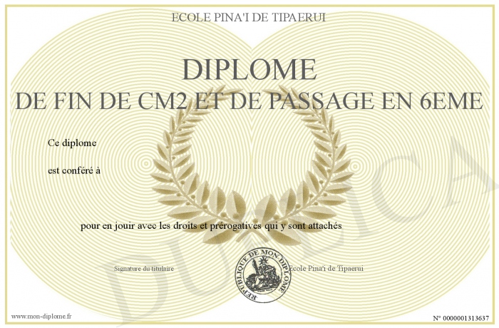 Envoyez par email votre Diplôme de fin de CM2 et de passage en 6ème personalisé