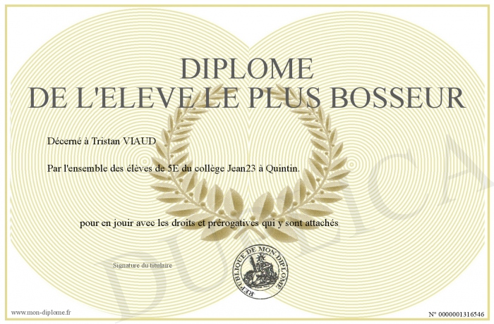 Envoyez par email votre Diplôme de l'élève le plus bosseur personalisé