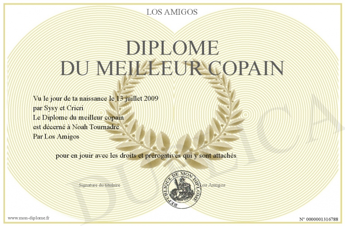 Envoyez par email votre Diplôme du meilleur copain personalisé