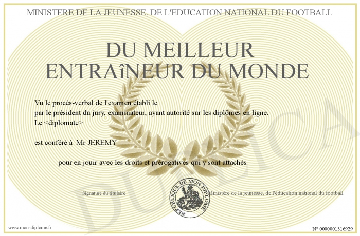 Envoyez par email votre du meilleur entraîneur du monde personalisé