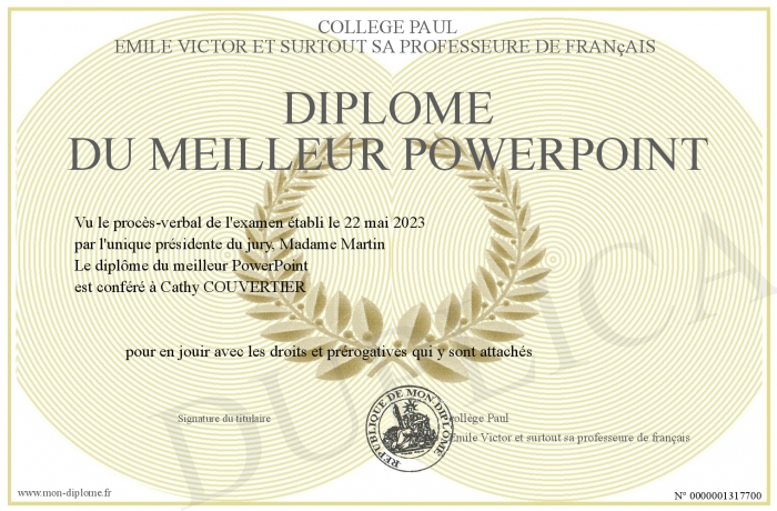 Envoyez par email votre Diplôme du meilleur PowerPoint personalisé