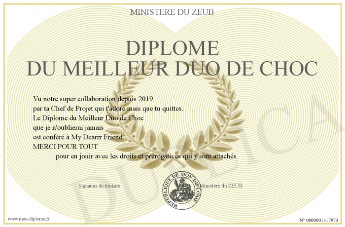 Envoyez par email votre Diplôme du Meilleur Duo de Choc personalisé