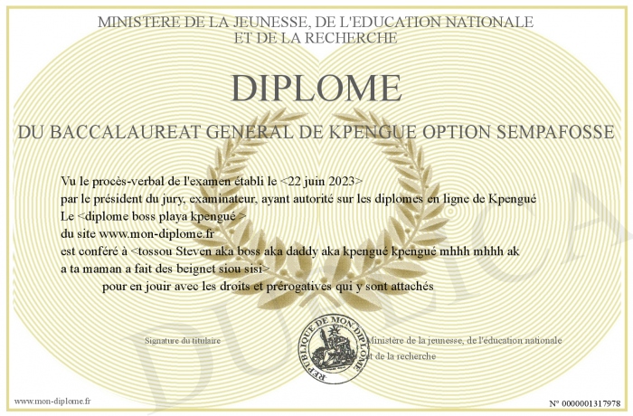 Envoyez par email votre Diplôme du baccalaureat général de kpengué option sempafosse personalisé