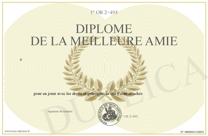 Envoyez par email votre Diplome de la meilleure amie personalisé
