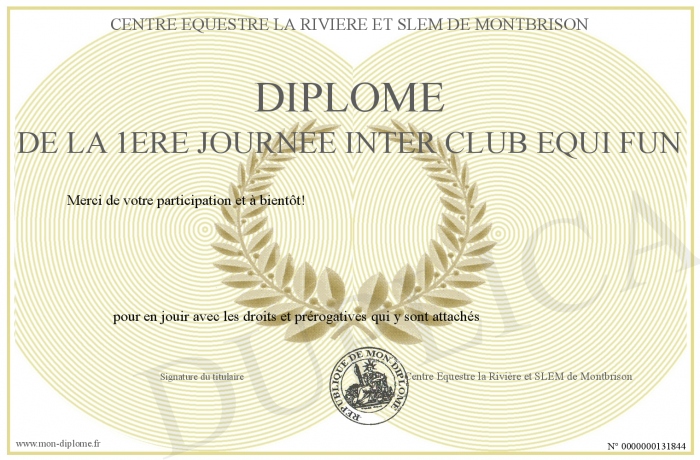 Envoyez par email votre Diplôme de la 1ère journée Inter club Equi Fun personalisé