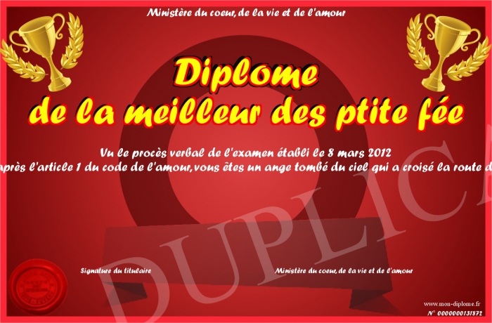 Envoyez par email votre Diplôme de la meilleur des ptite fée personalisé