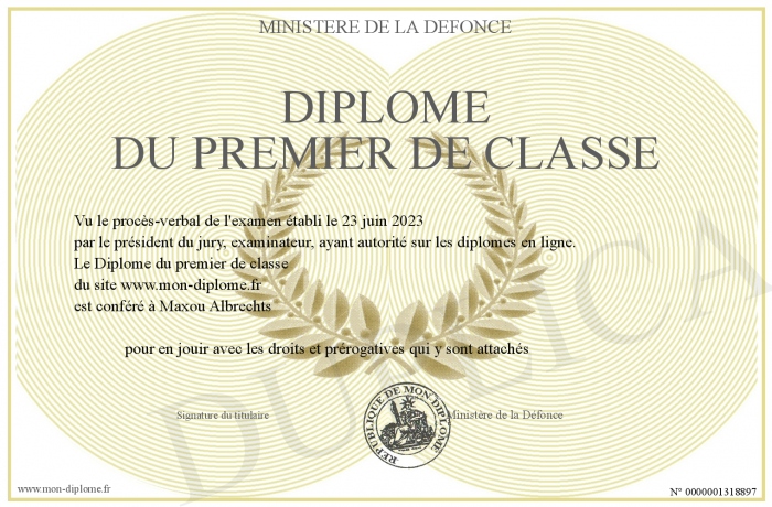 Envoyez par email votre Diplôme du premier de classe personalisé